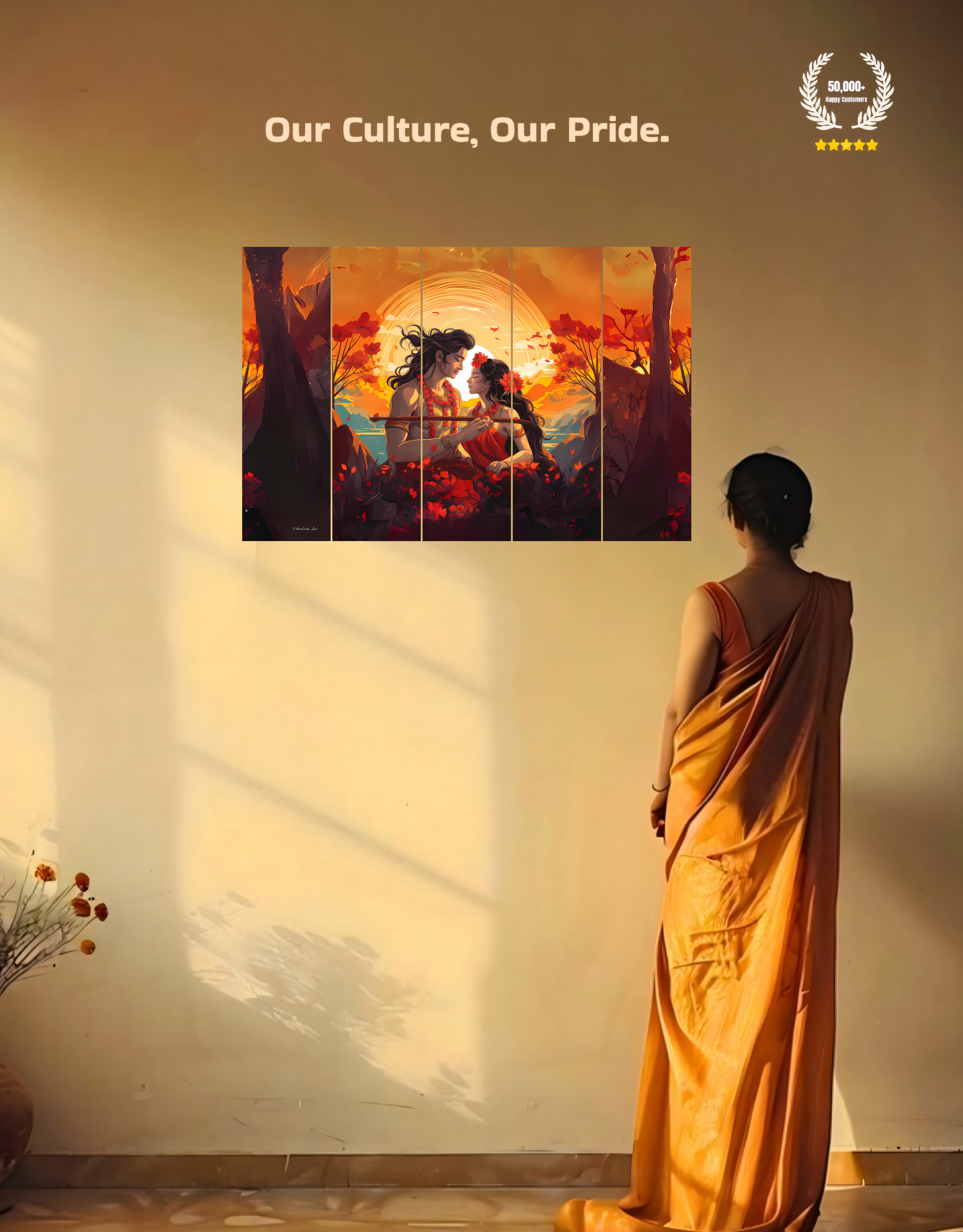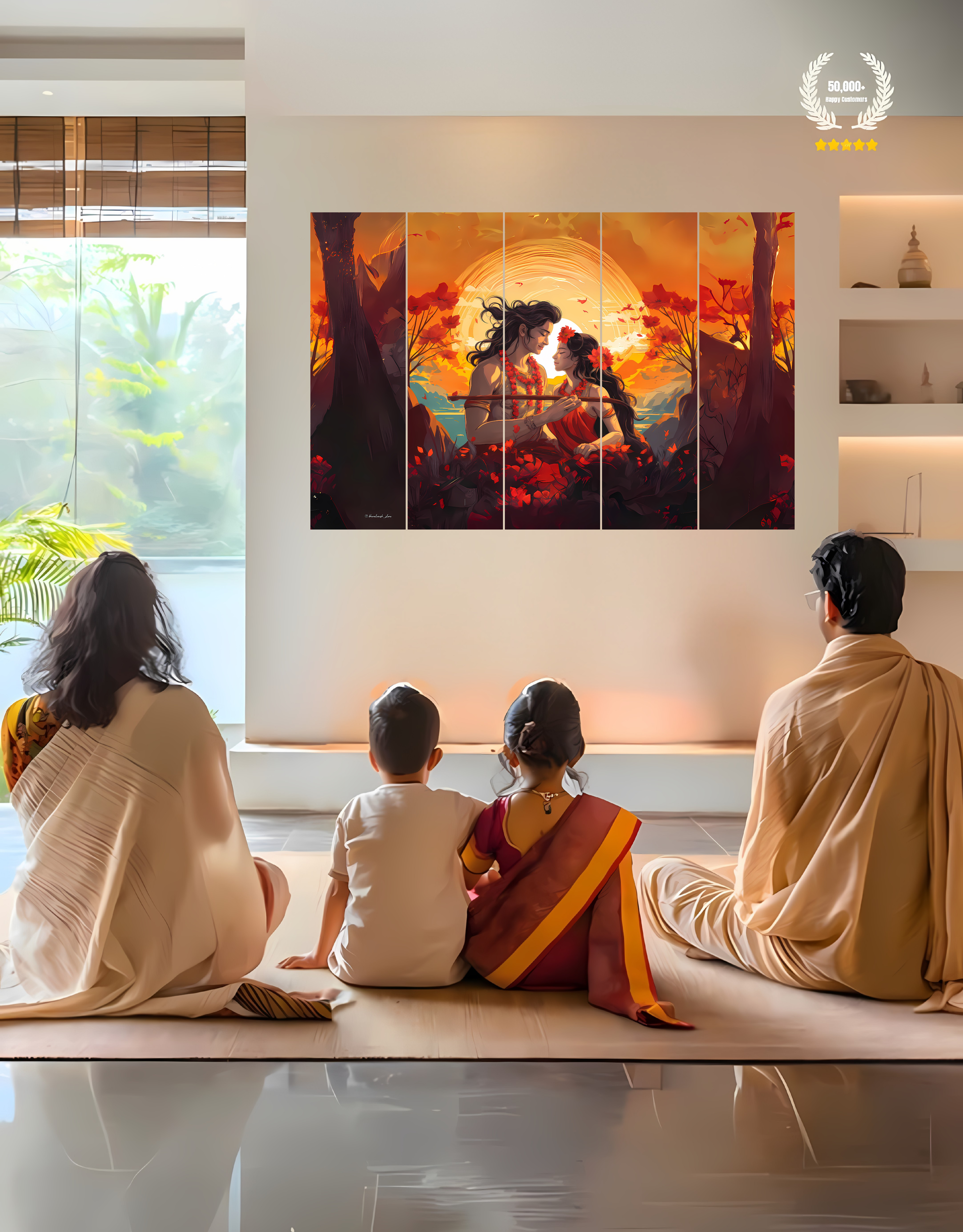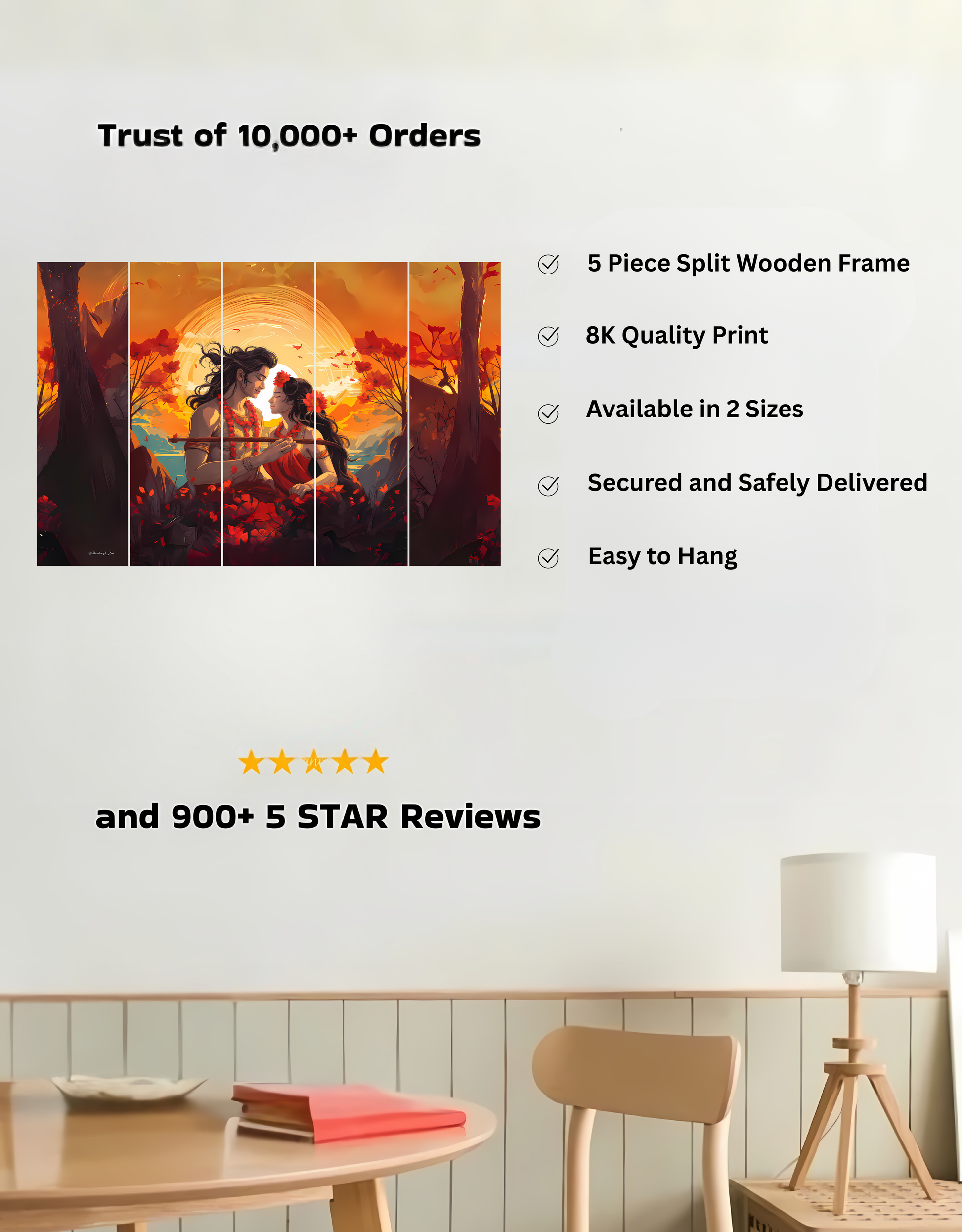 The Eternal Radha and Krishna in Vrindavan | 5-Piece Split Premium Wooden Frame (8K Quality Print)