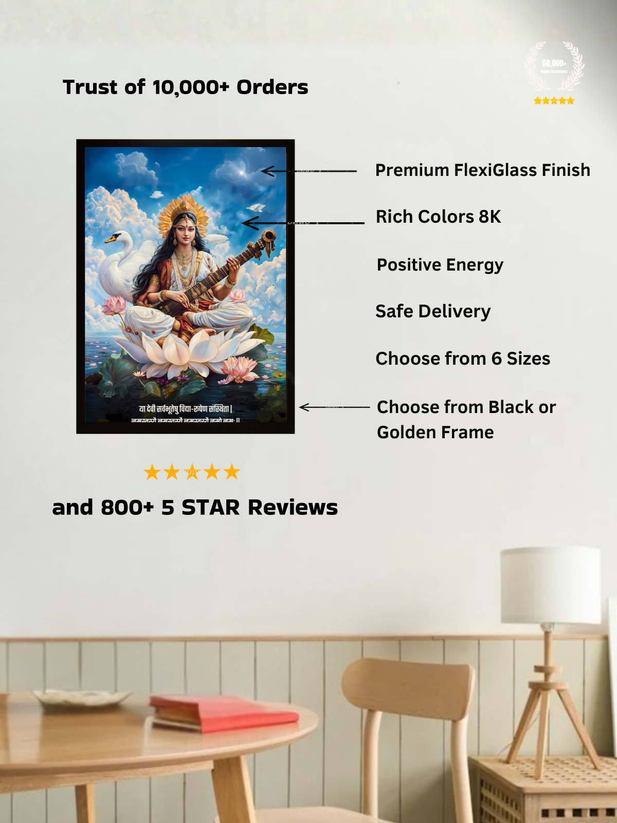 The "या देवी सर्वभूतेषु" Maa Saraswati Wall Frame | Premium Quality