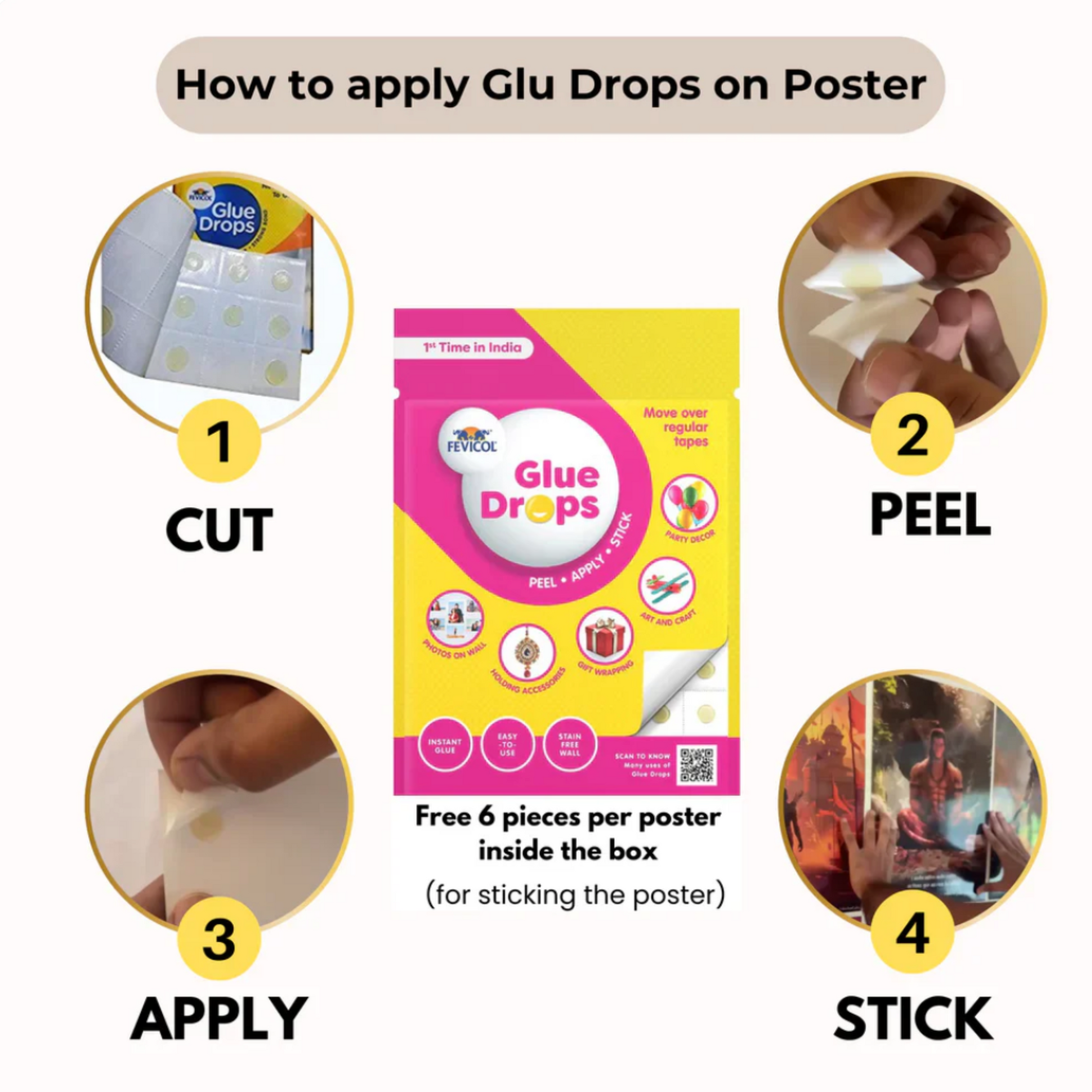 - Free Glue Drop Tape for wall friendly sticking and removal